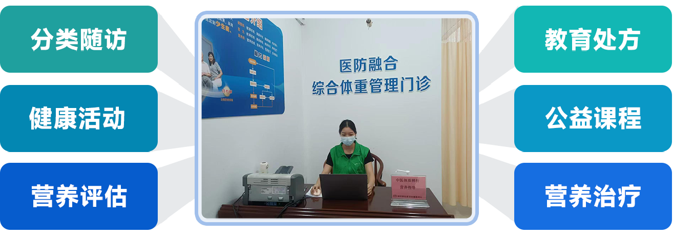本门诊建设以医防融合理念为指导,融合生理医学与生活医学双路径,以体重管理服务为切入点,打造医防融合示范窗口,具体包括:门诊定位、门诊制度、团队配置与培训、服务内容、运营流程、营养治疗收费项目设计等内容,并提供所有配套支撑运营资料,如宣传册、健康课程、健康活动方案等。